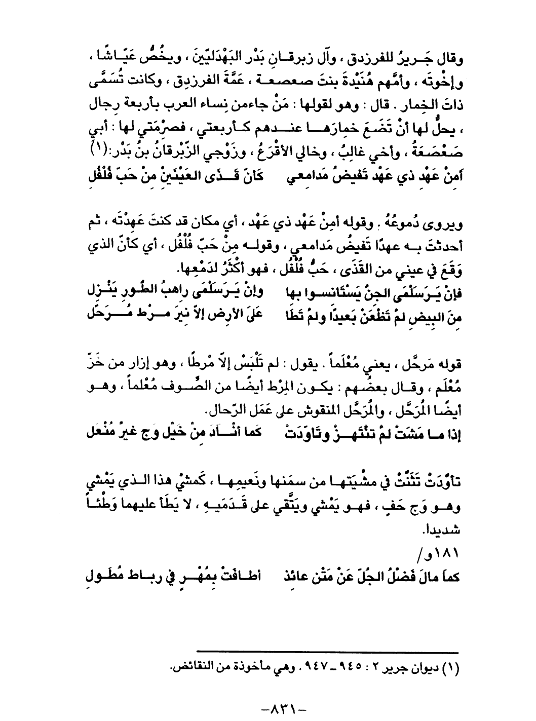 وقال جرير للفرزدق، وآل زبرقان بدر البهدليين، ويخص عيّاشاً، وإخوته، وأمهم هنيدة بنت