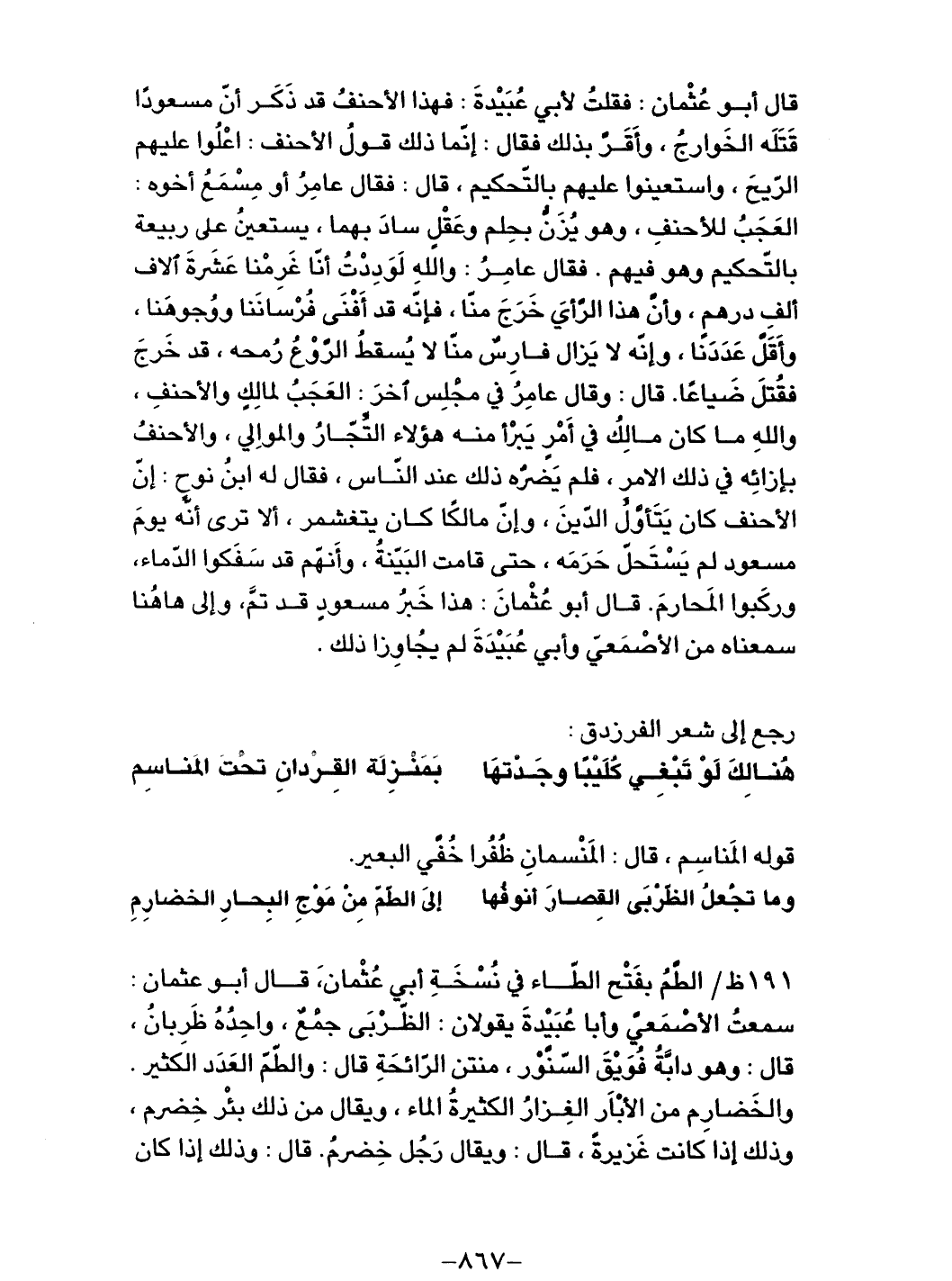 قال أبو عثمان: فقلت لأبي عبيدة: فهذا الأحنف قد ذكر أن مسعوداً قتله الخوارج، وأقرّ بذلك فقال:
