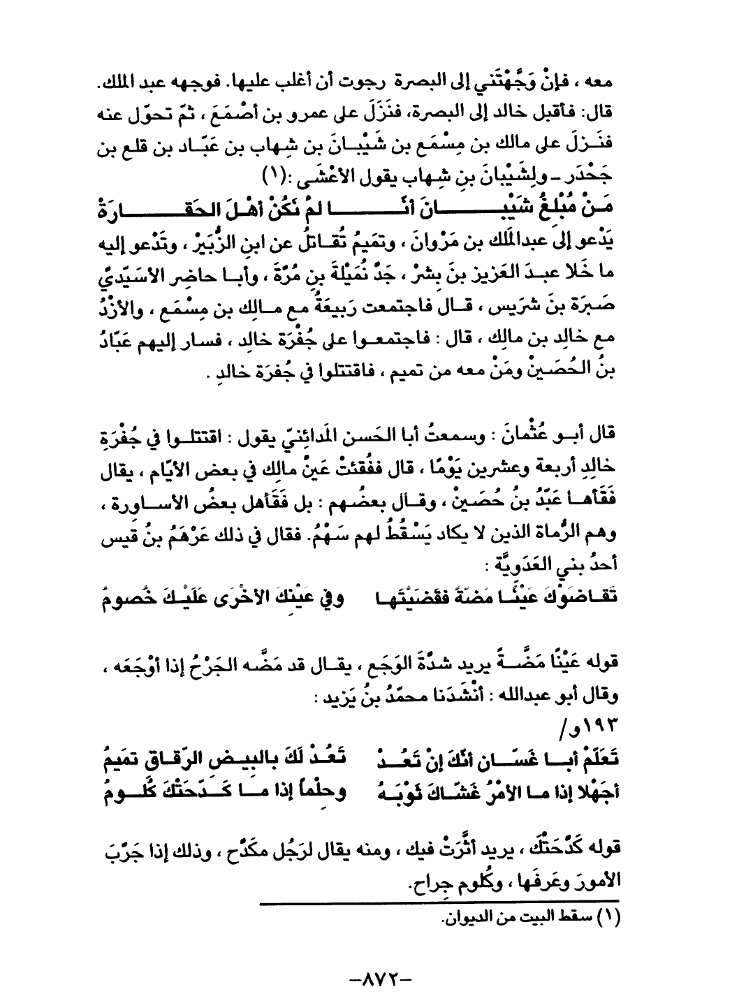 بشر، جَدّ نُميلة بن مُرة، وأبا حاضر الأسيدي صبرة بن شريس، قال فاجتمعت ربيعة مع مالك بن