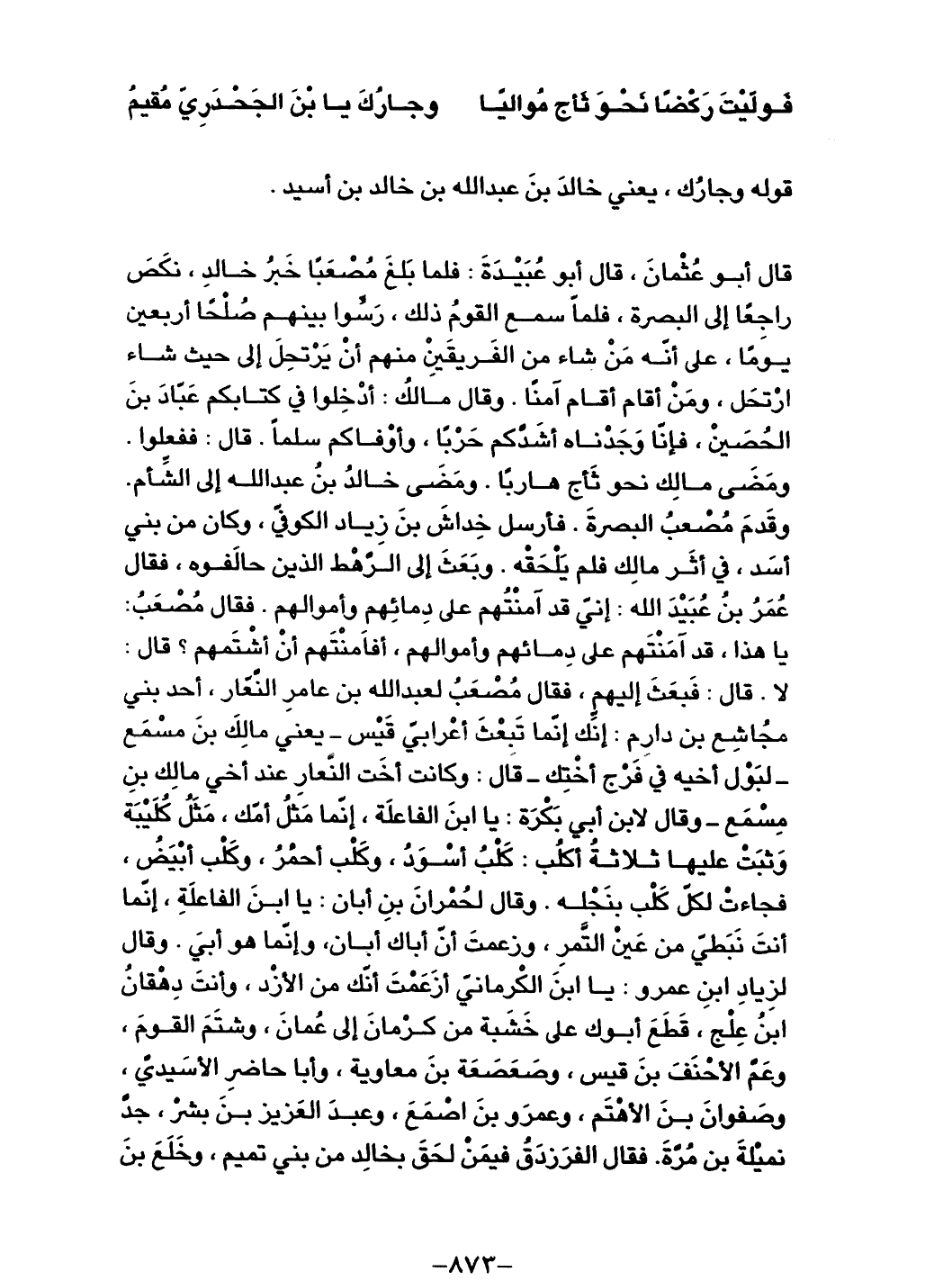 قال أبو عثمان، قال أبو عبيدة: فلما بلغ مصعباً خبر خالد، نكص راجعاً إلى البصرة، فلما سمع القوم
