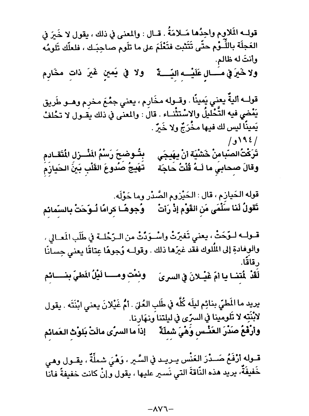 لقدْ لُمتنا يا أمّ غَيْلانَ في السرى ... ونِمْتِ وما ليلُ المَطيّ بنائِم