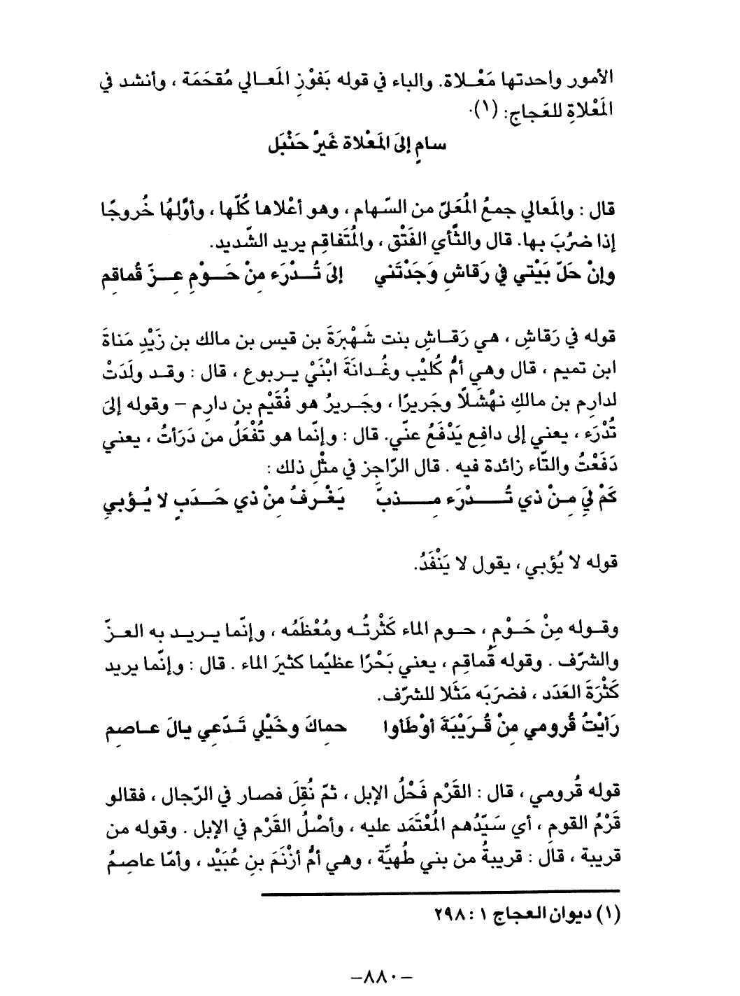 كَمْ ليَ مِنْ ذي تُدْرَء مِذبّ ... يَغْرفُ مِنْ ذي حَدَبٍ لا يُؤبيِ