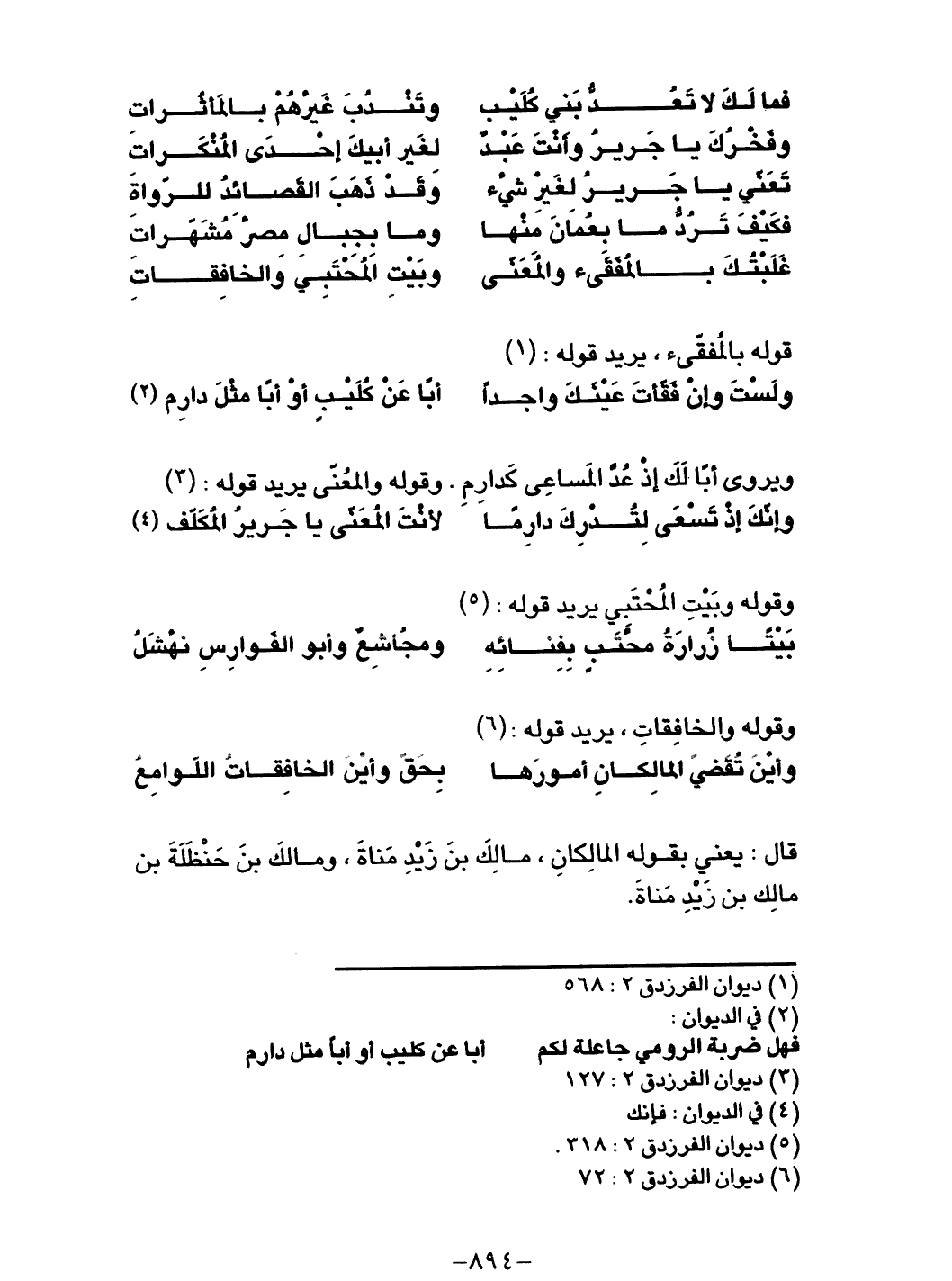 تعنّي يا جريرُ لغيرِ شيء ... وقدْ ذهبَ القصائدُ للرواةِ