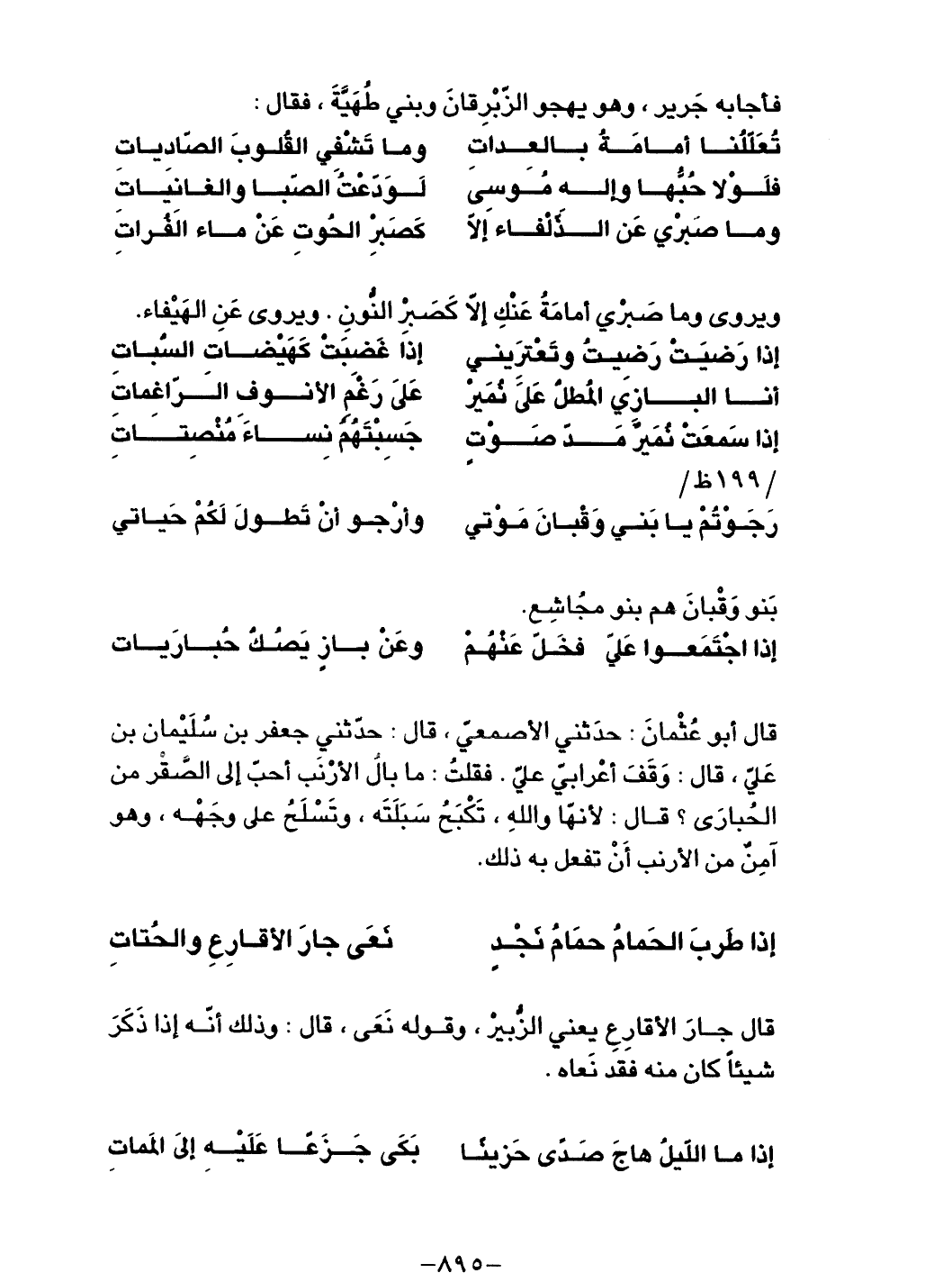 قال أبو عثمان: حدثني الأصمعي، قال: حدثني جعفر بن سليمان بن علي، قال: وقف أعرابي علي.