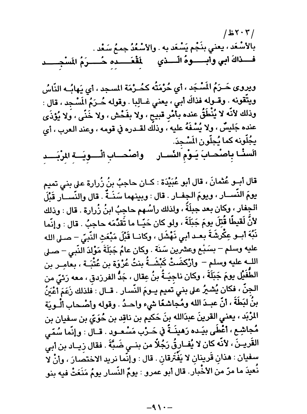 يفترقان. قال: وإنما نريد الاختصار، وأن لا نعيد ما مر من الأخبار. قال أبو عمرو: يوم النسار يوم