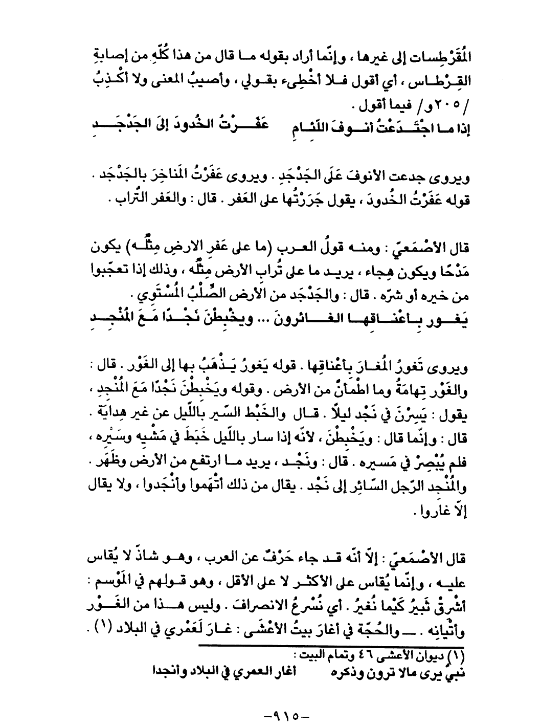 قال الأصمعي: ومنه قول العرب "ما على عفر الأرض مثله" يكون مدحاً ويكون هجاء، يريد ما على