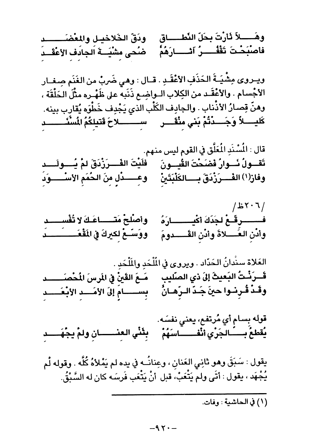 كَليلاً وَجَدتُمْ بَني مِنقَر ... سِلاحَ قَتيلكُمُ المُسنَدِ