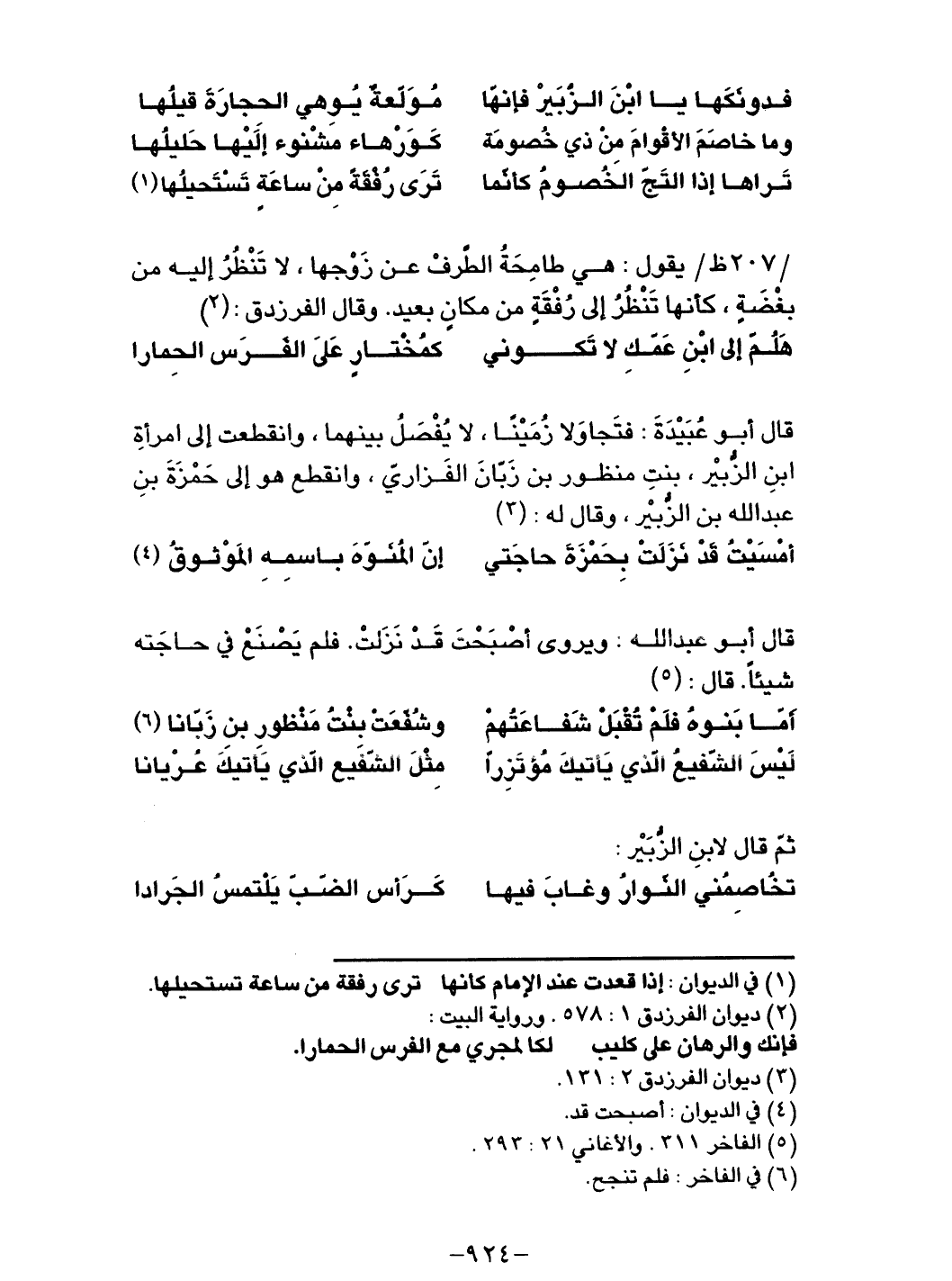 قال أبو عبيدة: فتجاولا زُميناً، لا يُفصل بينهما، وانقطعت إلى امرأة ابن الزبير، بنت منظور بن
