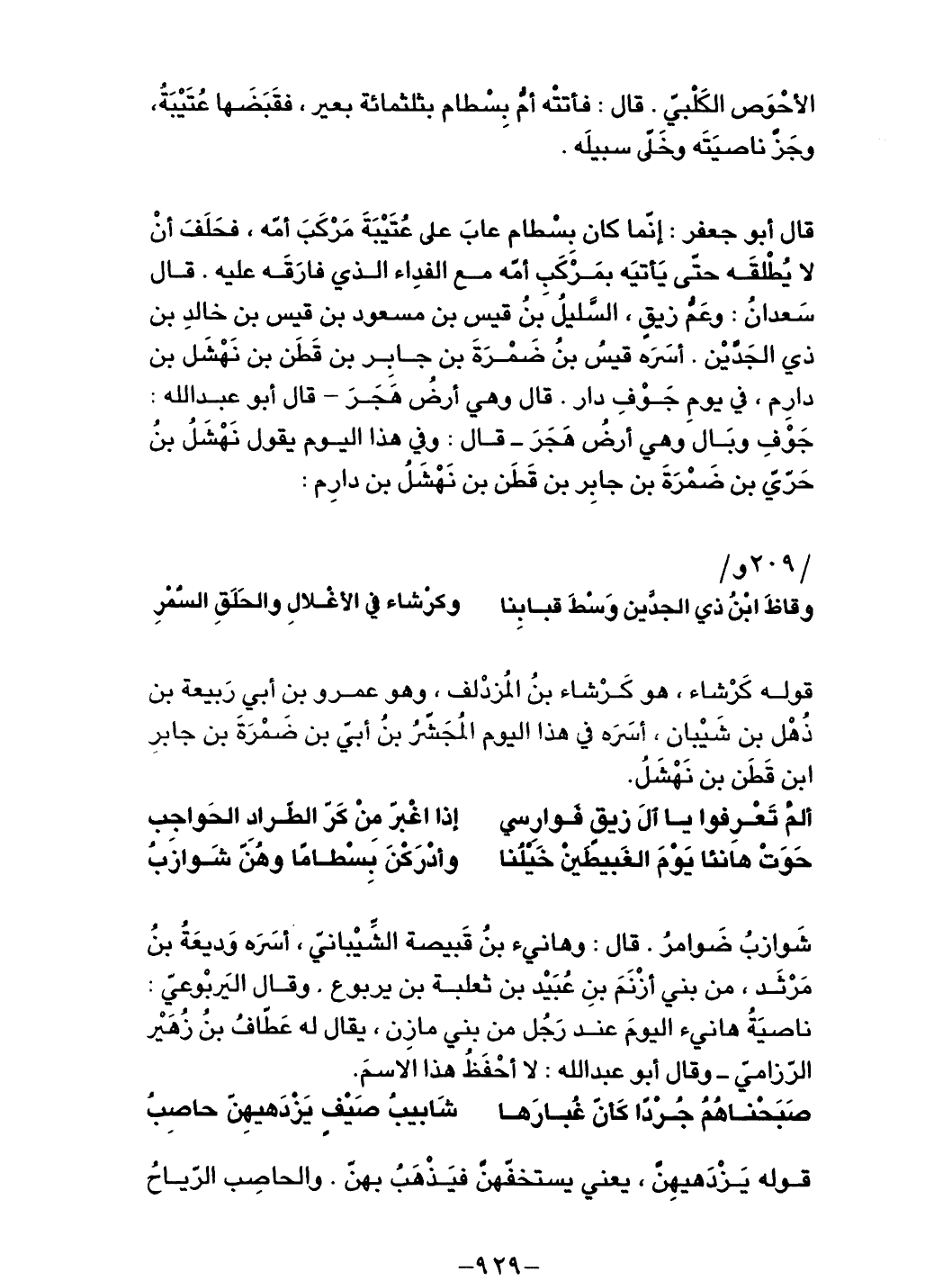 شوازب ضوامر. قال: وهانيء بن قبيصة الشيباني، أسره وديعة بن مرثد، من بني أزنم بن عبيد