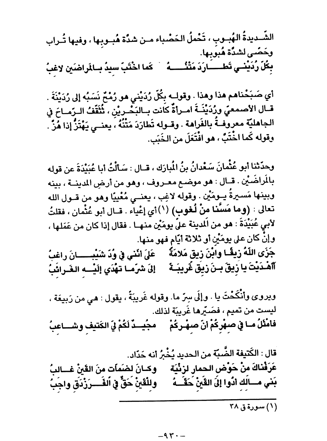 وحدثنا أبو عثمان سعدان بن المبارك، قال: سألت أبا عبيدة عن قوله بالمراضين. قال: هو موضع