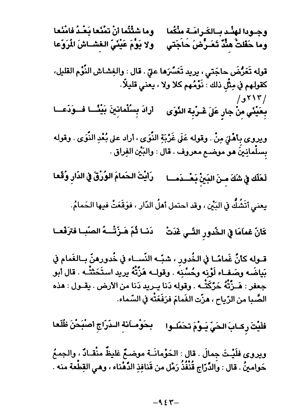 فليتَ رِكابَ الحَيّ يومَ تحَمّلوا ... بحَومانةِ الدّرّاجِ أصبَحنَ ظُلّعا