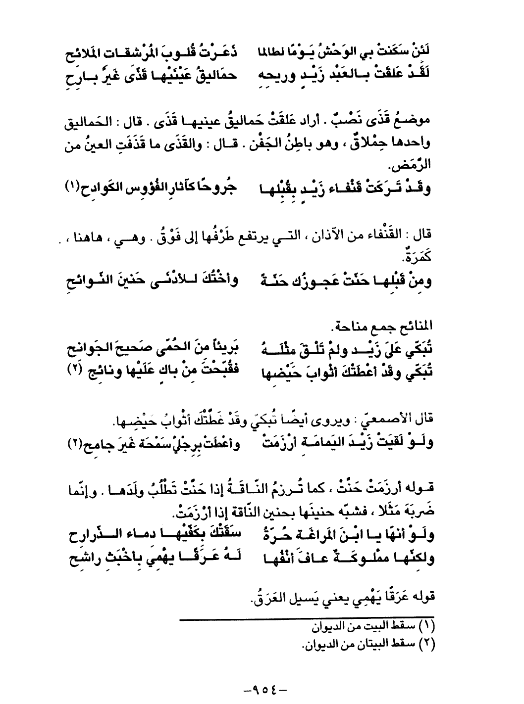 لقد علقَتْ بالعبد زيدٍ وريحِهِ ... حماليقُ عَينيها قَذىً غير بارِحِ