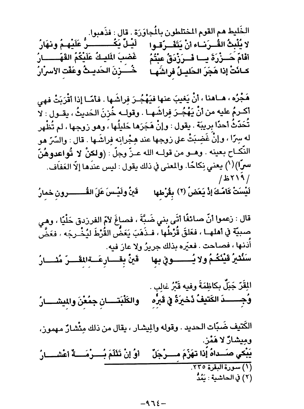 كانتْ إذا هَجرَ الحَليلُ فِراشَها ... خُزِنَ الحديثُ وعَفّتِ الأسرارُ