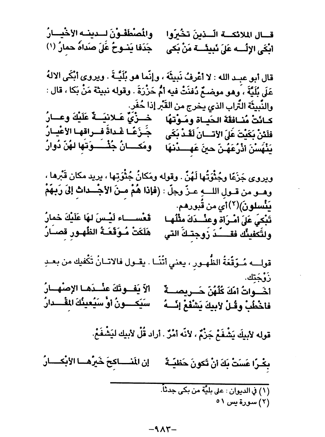 فلئنْ بكيتَ على الأتان لقد بكى ... جَزعاً غَداةَ فِراقِها الأعيارُ