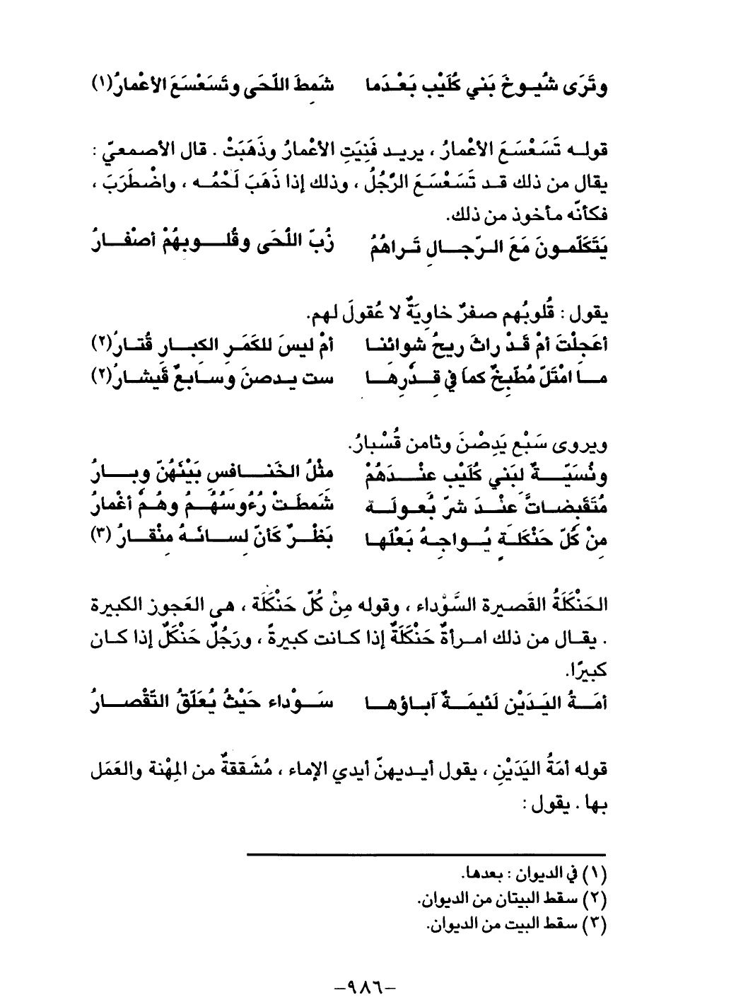 وترى شُيوخَ بَني كُليب بعدما ... شَمِطَ اللّحَى وتَسَعسَعَ الأعمارُ