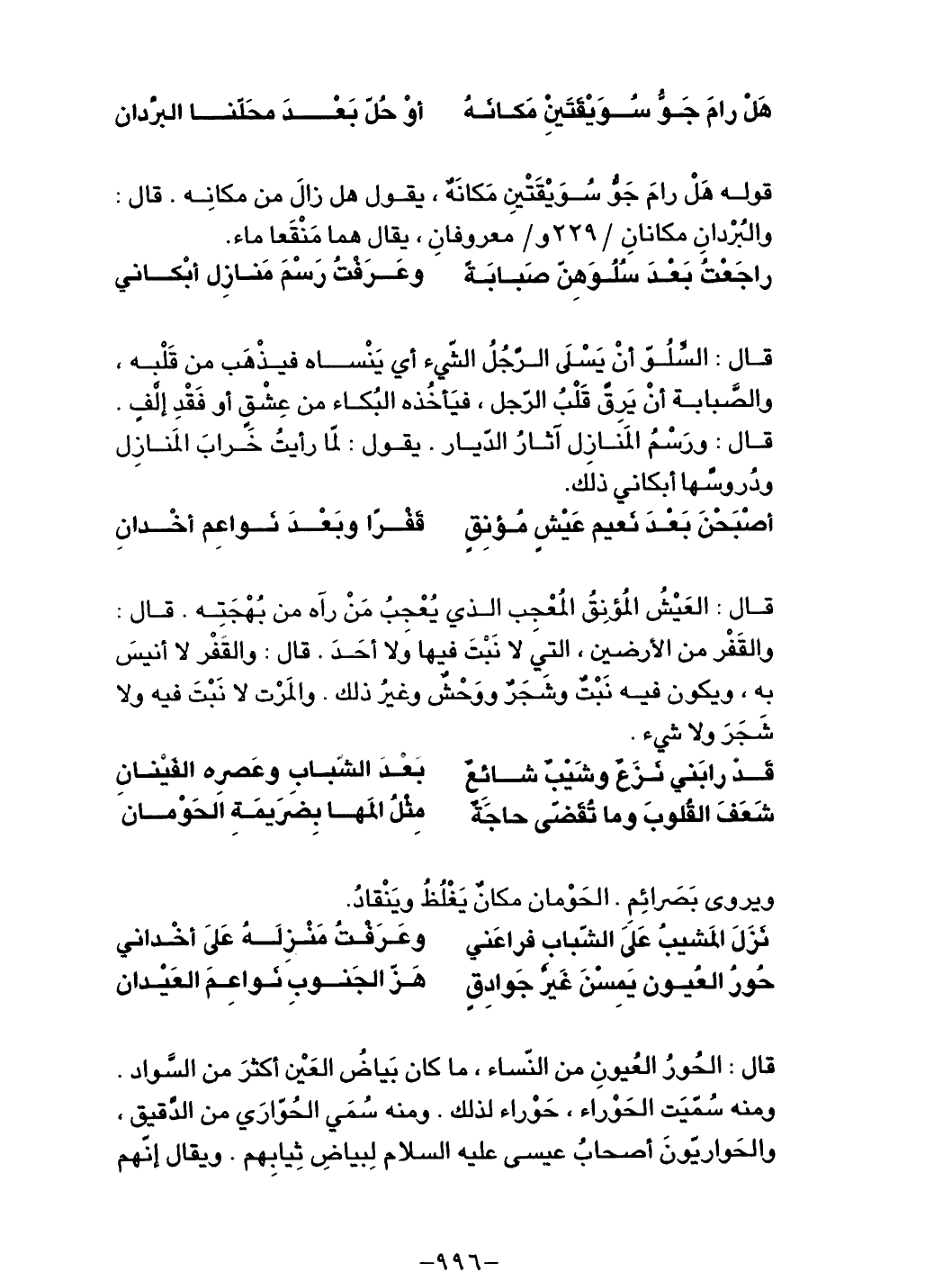البكاء من عشق أو فقد إلف. قال: ورسم المنازل آثار الديار. يقول: لما رأيت خراب المنازل