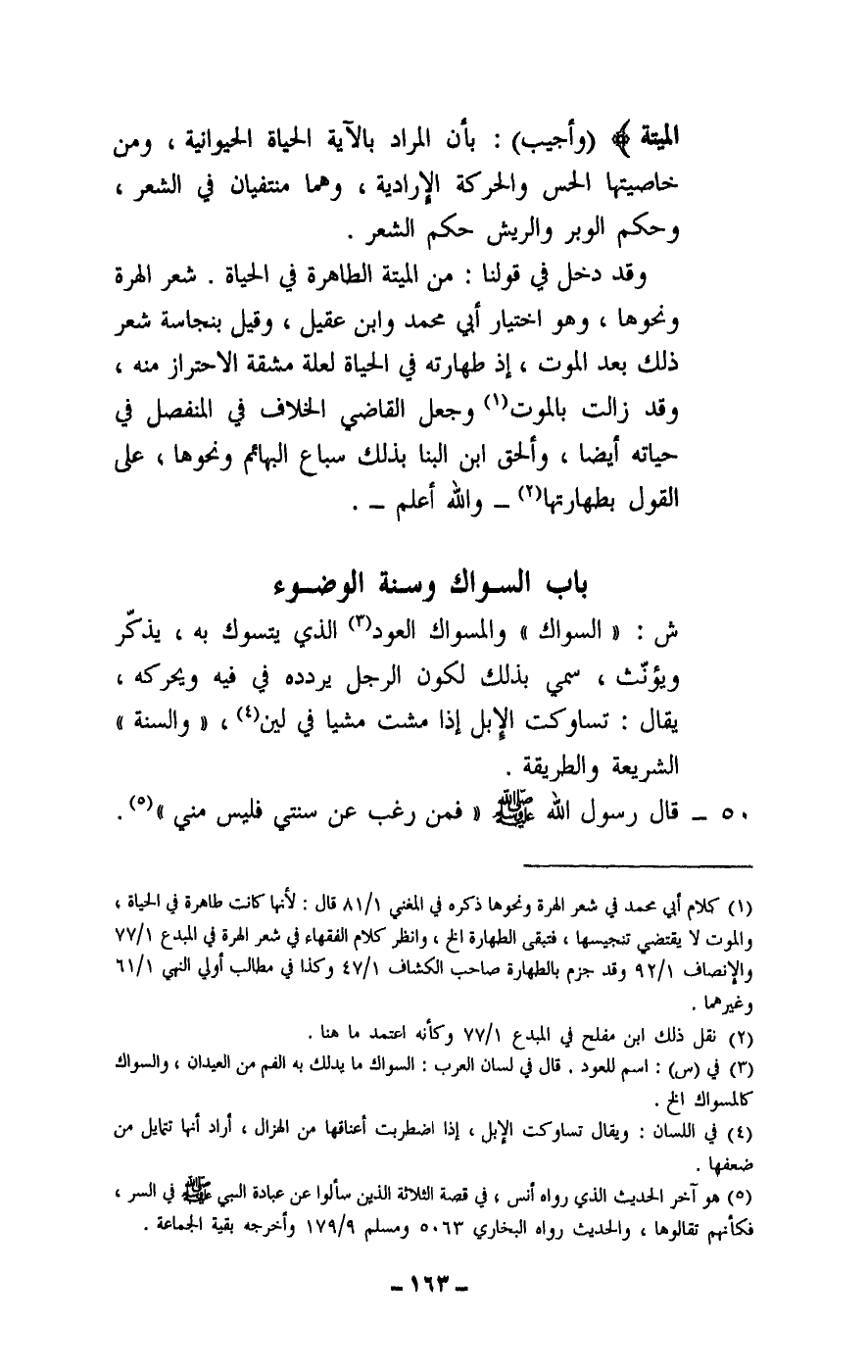 (وأجيب) : بأن المراد بالآية الحياة الحيوانية، ومن خاصيتها الحس والحركة الإرادية، وهما منتفيان في الشعر، وحكم الوبر والريش حكم الشعر.