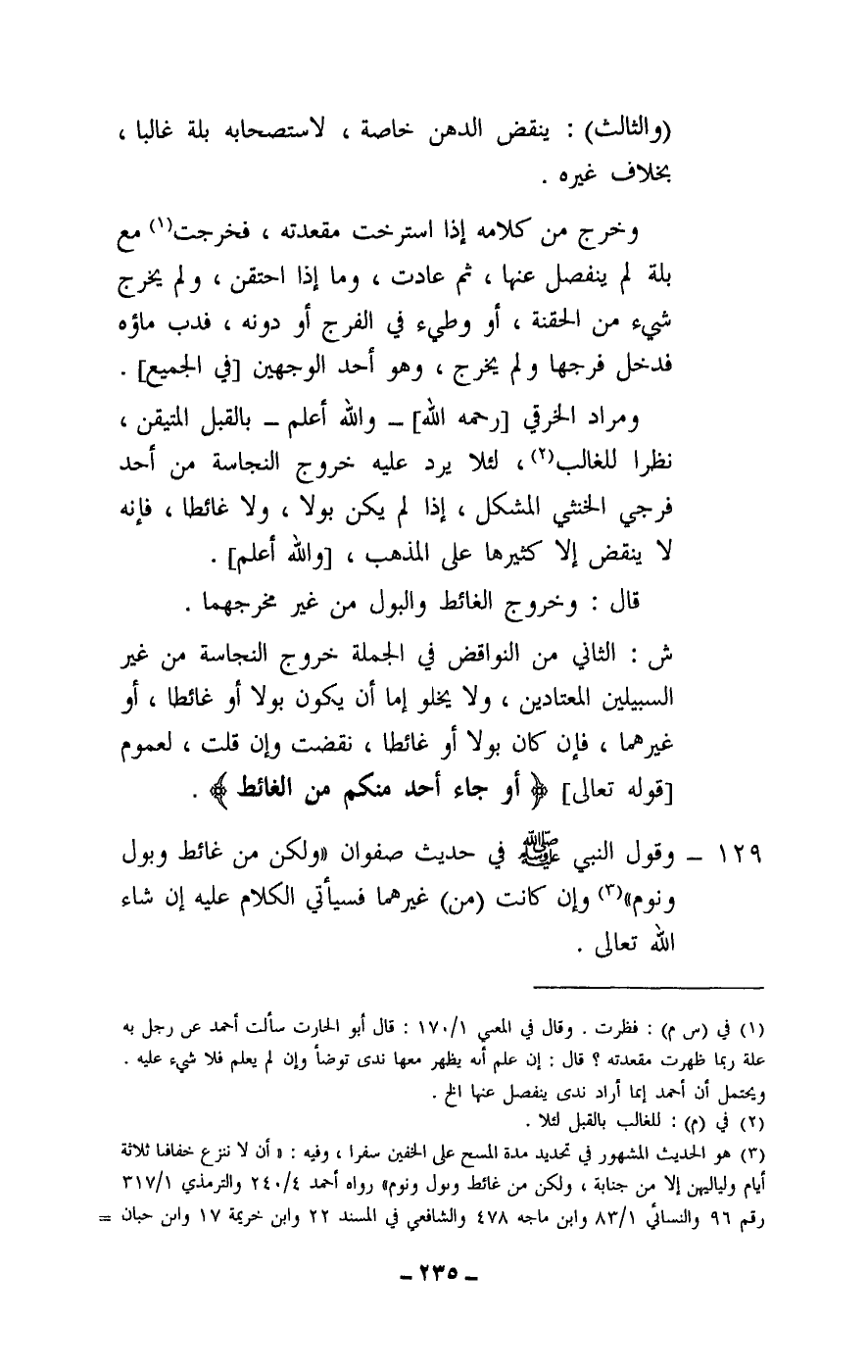 129 - وقول النبي - صَلَّى اللَّهُ عَلَيْهِ وَسَلَّمَ - في حديث صفوان: «ولكن من غائط وبول ونوم» وإن كانت (من) غيرهما فسيأتي الكلام عليه إن شاء الله تعالى.