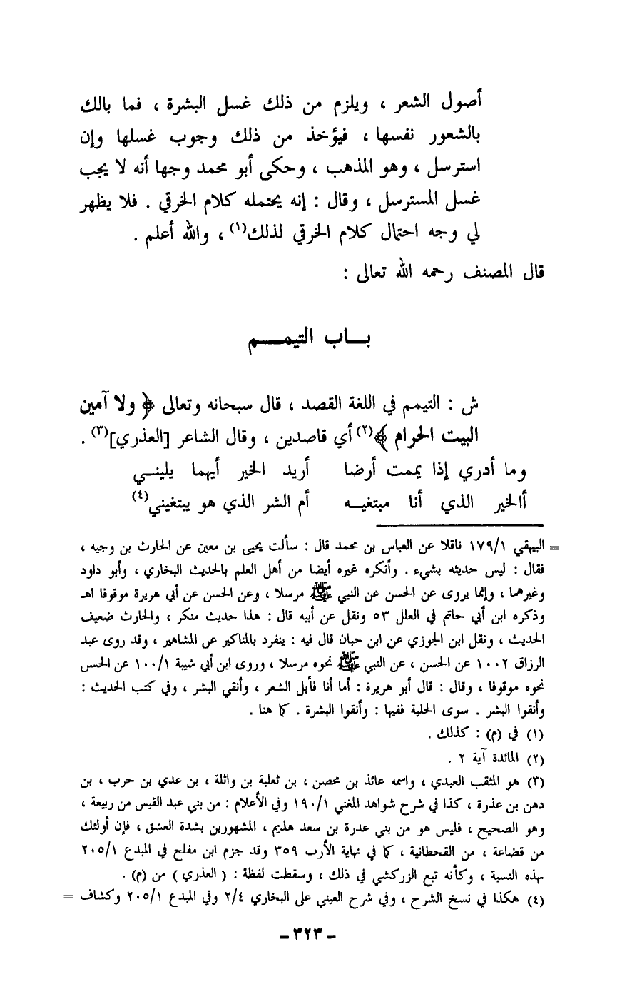ش: التيمم في اللغة القصد، قال سبحانه وتعالى: {وَلَا آمِّينَ الْبَيْتَ الْحَرَامَ} [المائدة: 2] أي قاصدين، وقال الشاعر [العذري] :