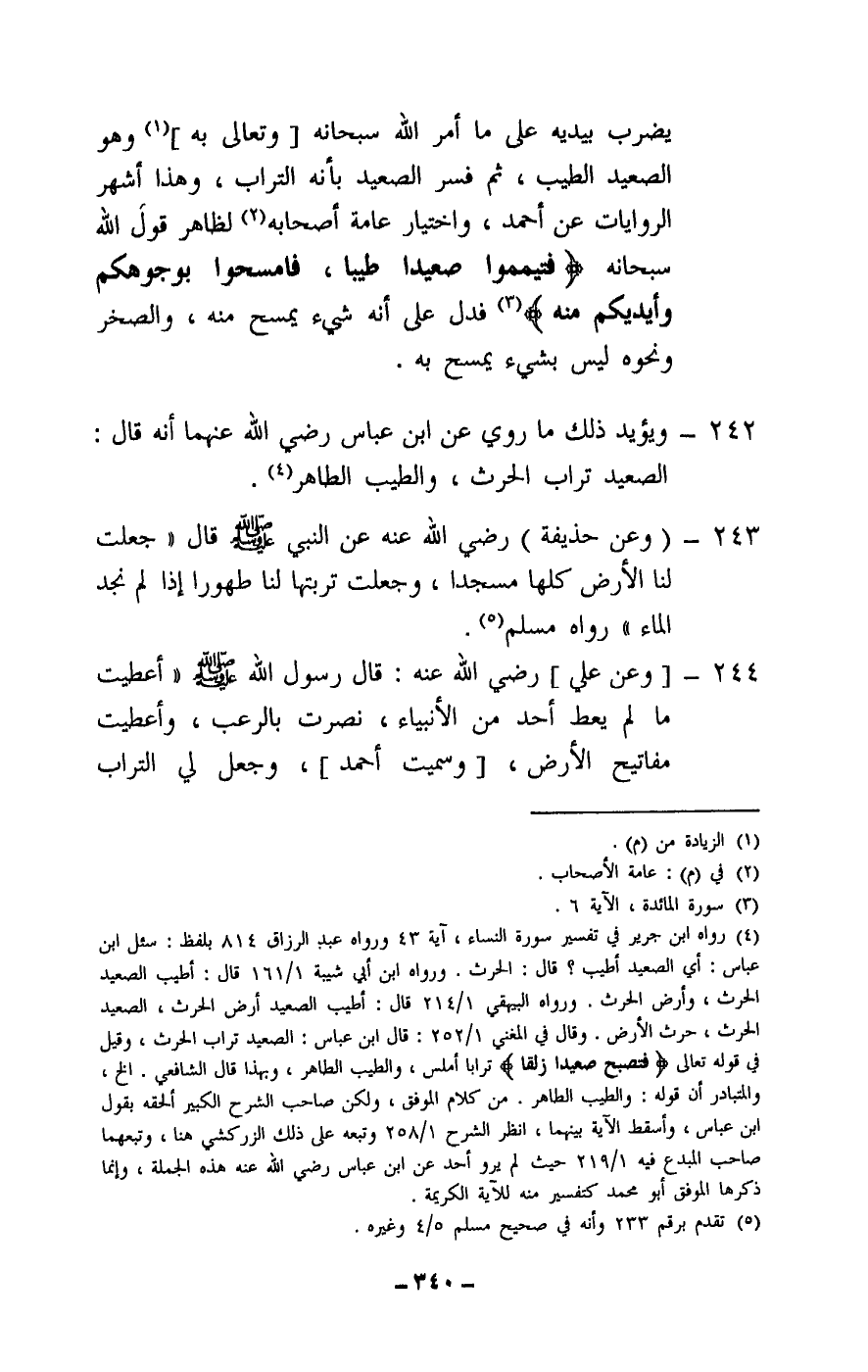 242 - ويؤيد ذلك ما روي عن ابن عباس - رَضِيَ اللَّهُ عَنْهُمَا - أنه قال: الصعيد تراب الحرث، والطيب الطاهر.