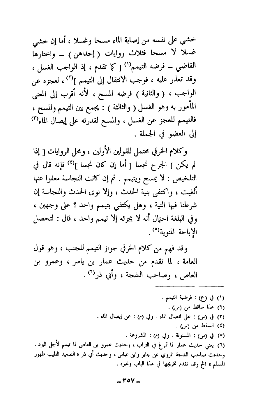 وقد فهم من كلام الخرقي جواز التيمم للجنب، وهو قول العامة، لما تقدم من حديث عمار بن ياسر، وعمرو بن العاص، وصاحب الشجة، وأبي ذر.