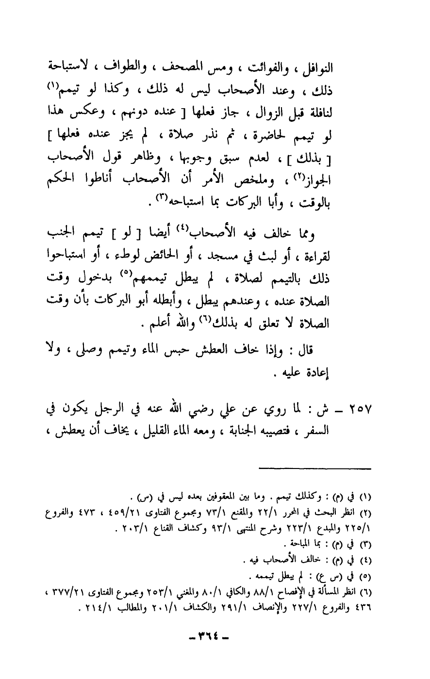 257 - ش: لما روي عن علي - رَضِيَ اللَّهُ عَنْهُ - في الرجل يكون في السفر، فتصيبه الجنابة، ومعه الماء القليل، يخاف أن يعطش،