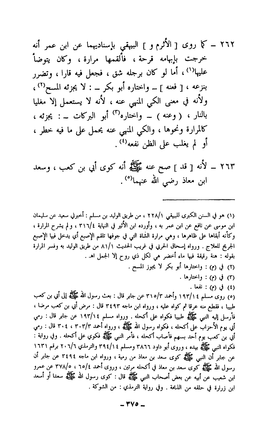 263 - لأنه [قد] صح عنه أنه كوى أبي بن كعب، وسعد ابن معاذ - رَضِيَ اللَّهُ عَنْهُمَا -.