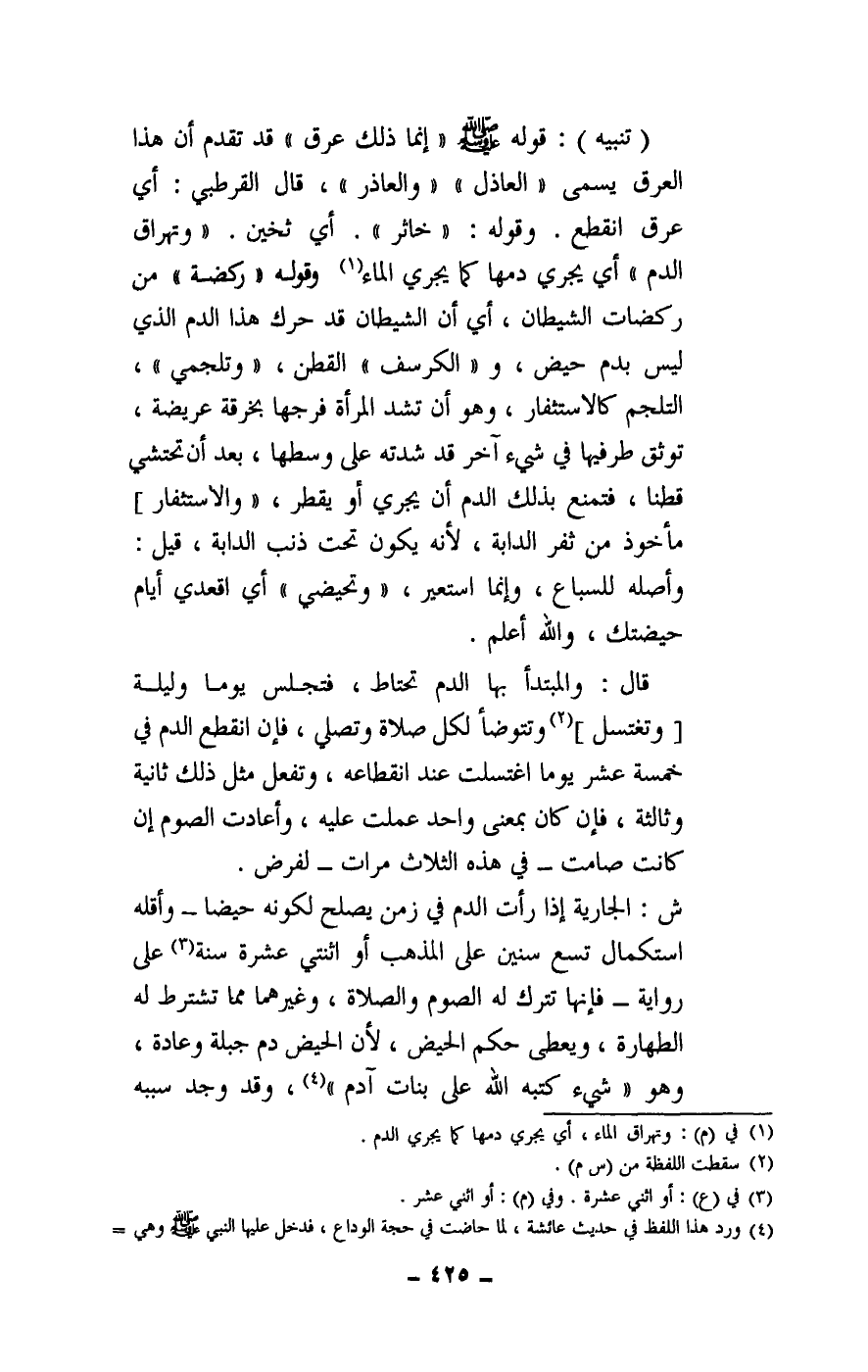 (تنبيه) : قوله - صَلَّى اللَّهُ عَلَيْهِ وَسَلَّمَ -: «إنما ذلك عرق» قد تقدم أن هذا العرق يسمى: «العاذل» «والعاذر» ، قال القرطبي: أي عرق انقطع.