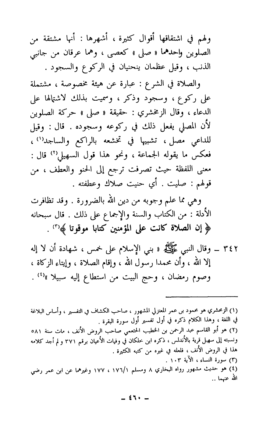 342 - وقال النبي - صَلَّى اللَّهُ عَلَيْهِ وَسَلَّمَ -: «بني الإسلام على خمس، شهادة أن لا إله إلا الله، وأن محمدا رسول الله، وإقام الصلاة، وإيتاء الزكاة، وصوم رمضان، وحج البيت من استطاع إليه سبيلا» » .
