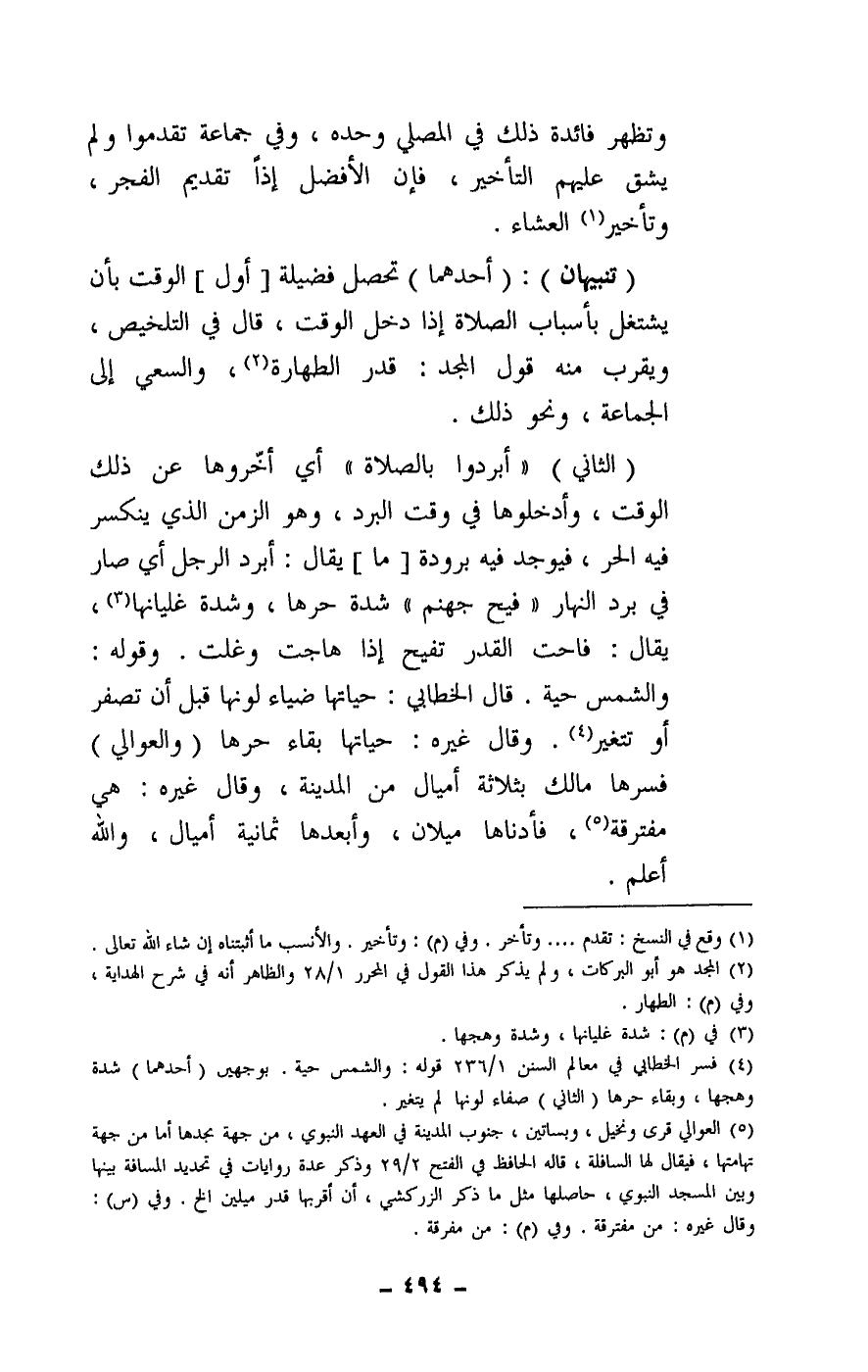 وقوله: والشمس حية. قال الخطابي: حياتها ضياء لونها قبل أن تصفر أو تتغير، وقال غيره: حياتها بقاء حرها (والعوالي) فسرها مالك بثلاثة أميال من المدينة، وقال غيره: هي مفترقة، فأدناها ميلان، وأبعدها ثمانية أميال، والله أعلم.