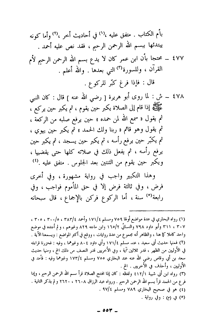 477 - محتجا بأن ابن عمر كان لا يدع بِسْمِ اللَّهِ الرَّحْمَنِ الرَّحِيمِ لأم القرآن، وللسورة التي بعدها. والله أعلم.