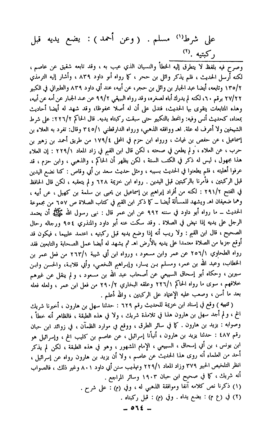 على شرط مسلم. (وعن أحمد) : يضع يديه قبل ركبتيه.