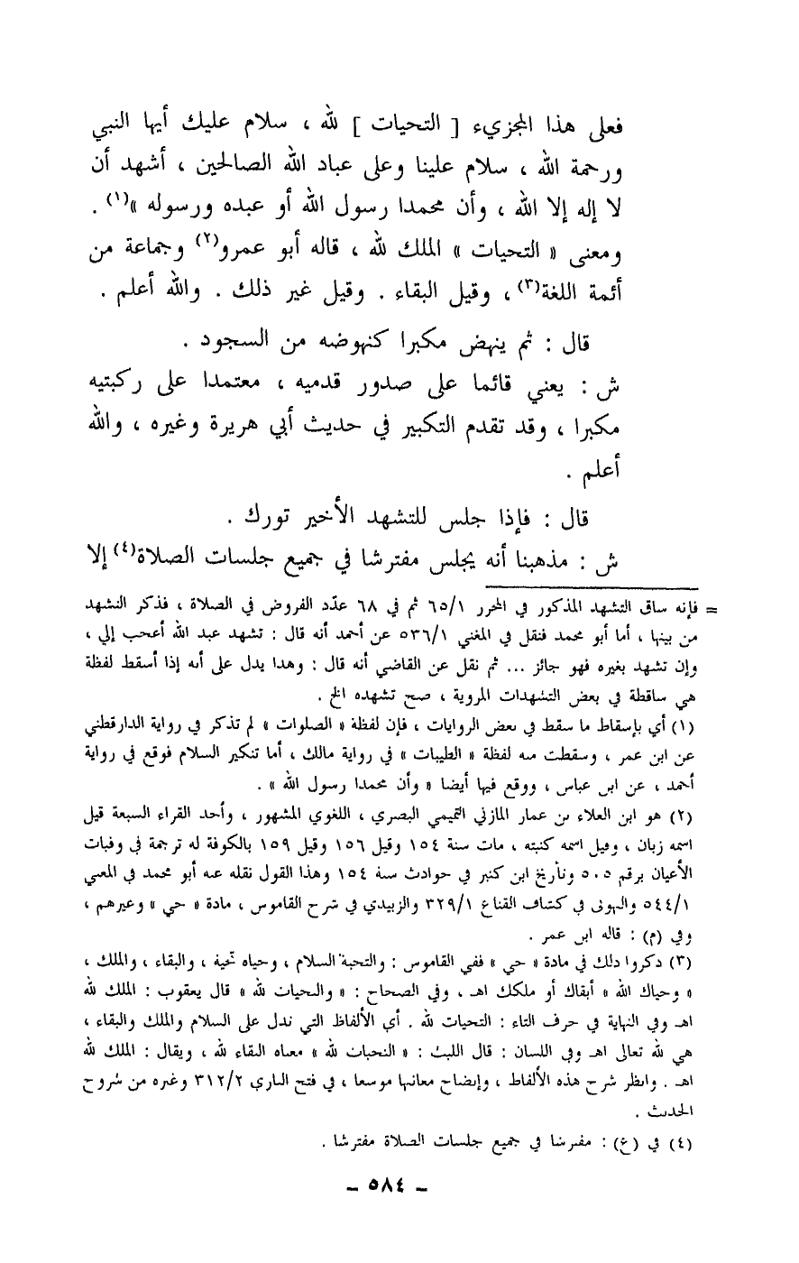 ومعنى «التحيات» : الملك لله، قاله أبو عمرو وجماعة من أئمة اللغة، وقيل: البقاء. وقيل غير ذلك. والله أعلم.