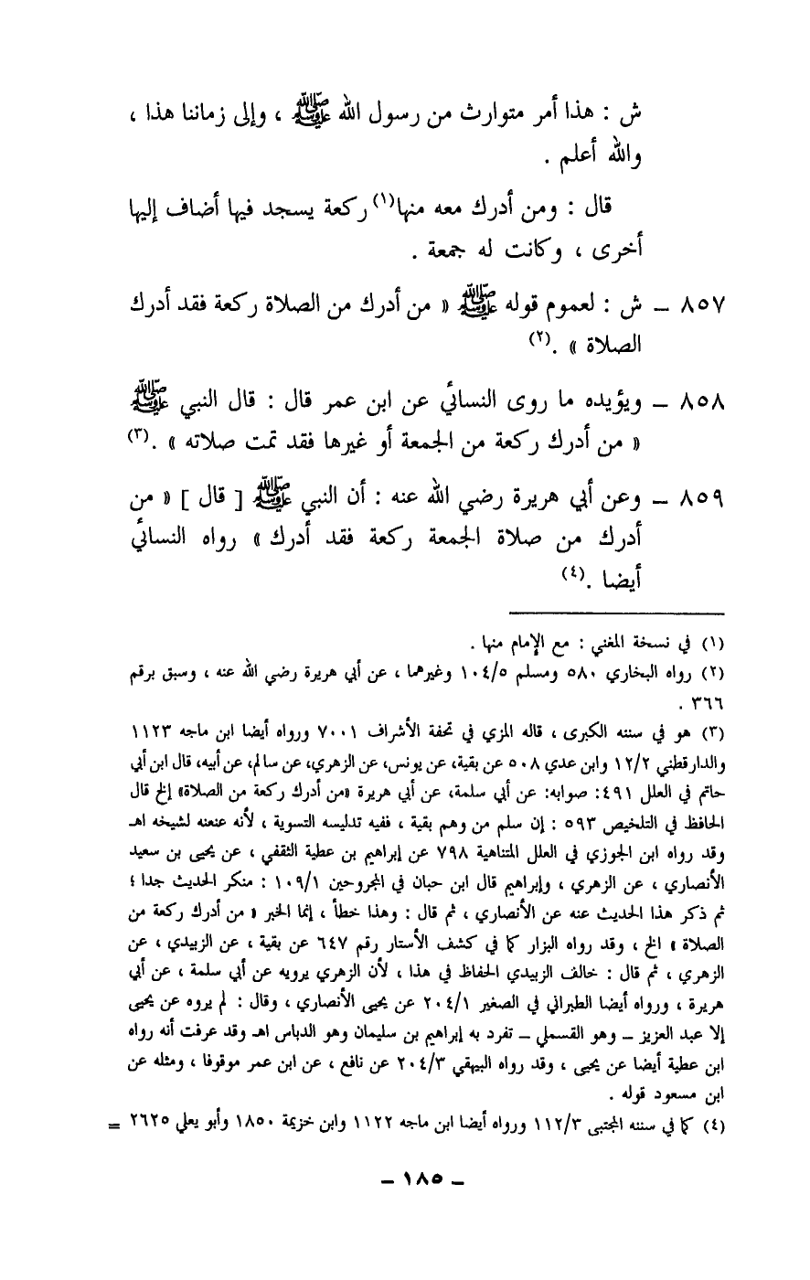 858 - ويؤيده ما روى النسائي عن ابن عمر قال: قال النبي - صَلَّى اللَّهُ عَلَيْهِ وَسَلَّمَ -: «من أدرك ركعة من الجمعة أو غيرها فقد تمت صلاته» .