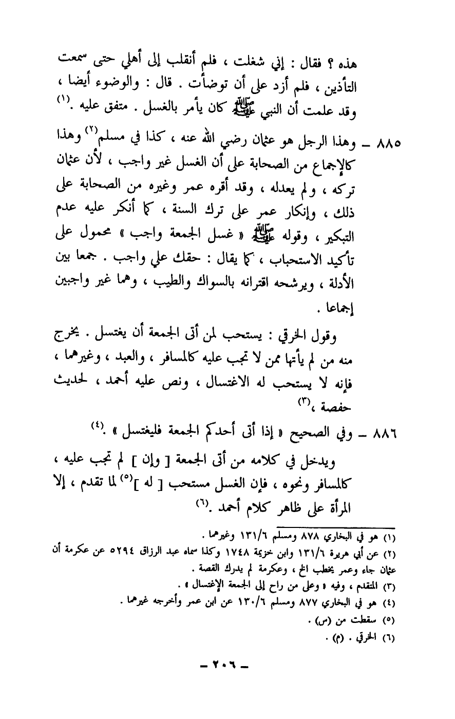 885 - وهذا الرجل هو عثمان - رَضِيَ اللَّهُ عَنْهُ -، كذا في مسلم وهذا كالإجماع من الصحابة على أن الغسل غير واجب، لأن عثمان تركه، ولم يعدله، وقد أقره عمر وغيره من الصحابة على ذلك، وإنكار عمر على ترك السنة، كما أنكر عليه عدم التبكير، وقوله: - صَلَّى اللَّهُ عَلَيْهِ وَسَلَّمَ - «غسل الجمعة واجب» محمول على تأكيد الاستحباب، كما يقال: حقك علي واجب. جمعا بين الأدلة، ويرشحه اقترانه بالسواك والطيب، وهما غير واجبين إجماعا.