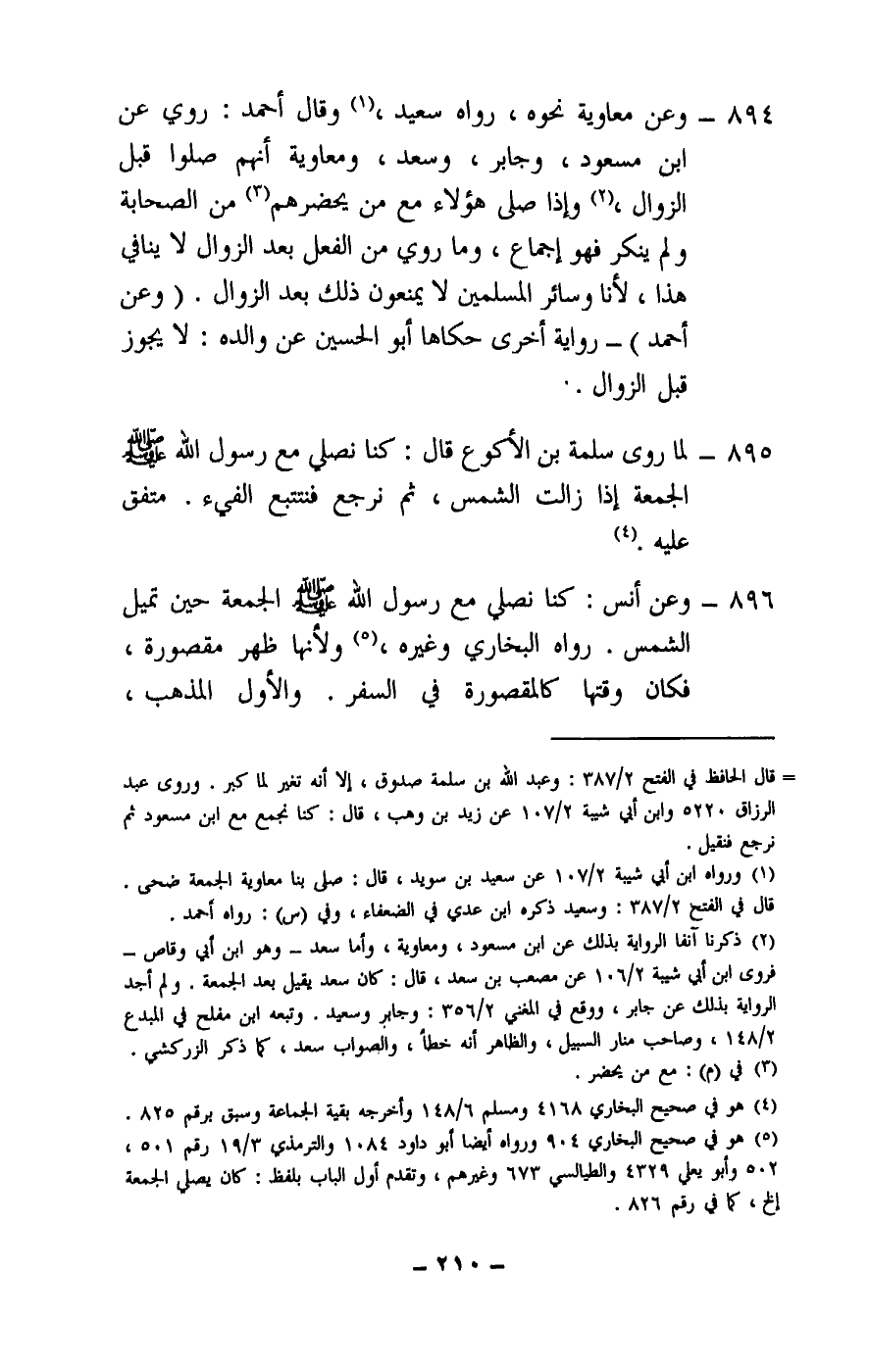 895 - لما «روى سلمة بن الأكوع قال: كنا نصلي مع رسول الله - صَلَّى اللَّهُ عَلَيْهِ وَسَلَّمَ - الجمعة إذا زالت الشمس، ثم نرجع فنتتبع الفيء» . متفق عليه.