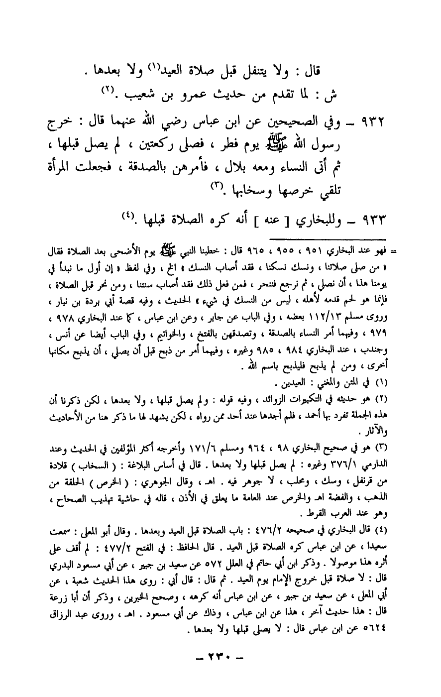 933 - وللبخاري [عنه] أنه كره الصلاة قبلها.