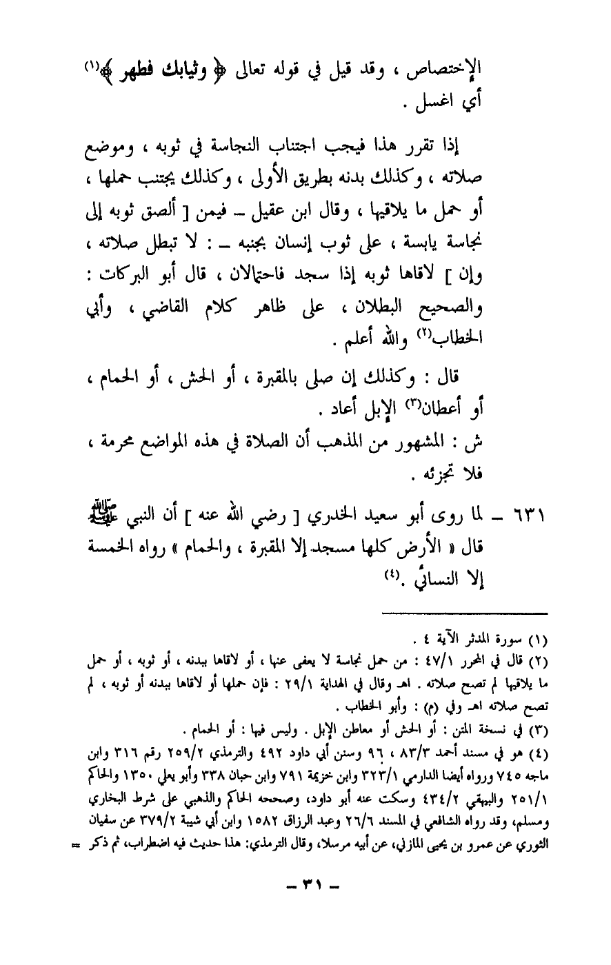 631 - لما روى أبو سعيد الخدري [- رَضِيَ اللَّهُ عَنْهُ -] أن النبي - صَلَّى اللَّهُ عَلَيْهِ وَسَلَّمَ - قال: «الأرض كلها مسجد إلا المقبرة، والحمام» رواه الخمسة إلا النسائي.