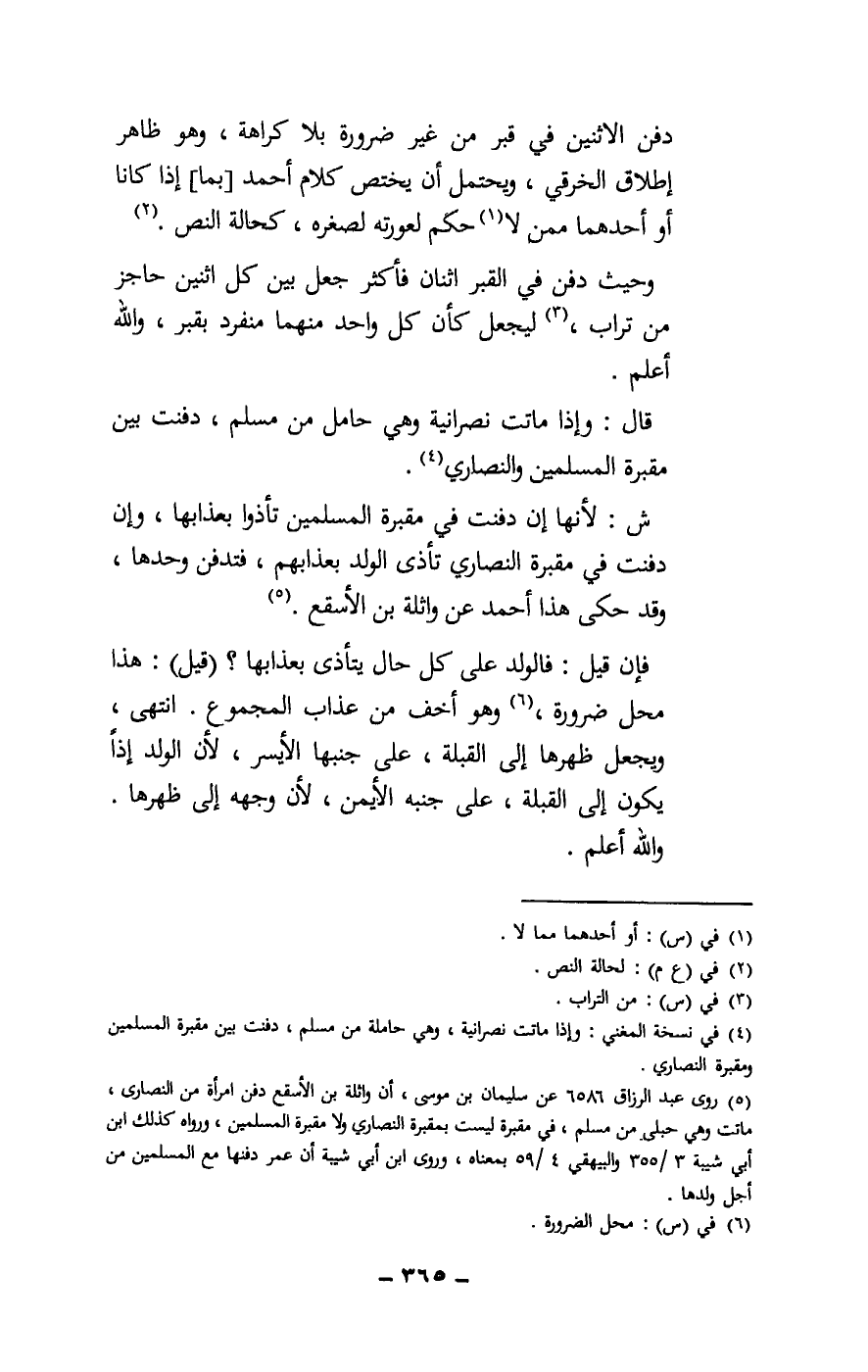 ش: لأنها إن دفنت في مقبرة المسلمين تأذوا بعذابها، وإن دفنت في مقبرة النصارى تأذى الولد بعذابهم، فتدفن وحدها، وقد حكى هذا أحمد عن واثلة بن الأسقع.