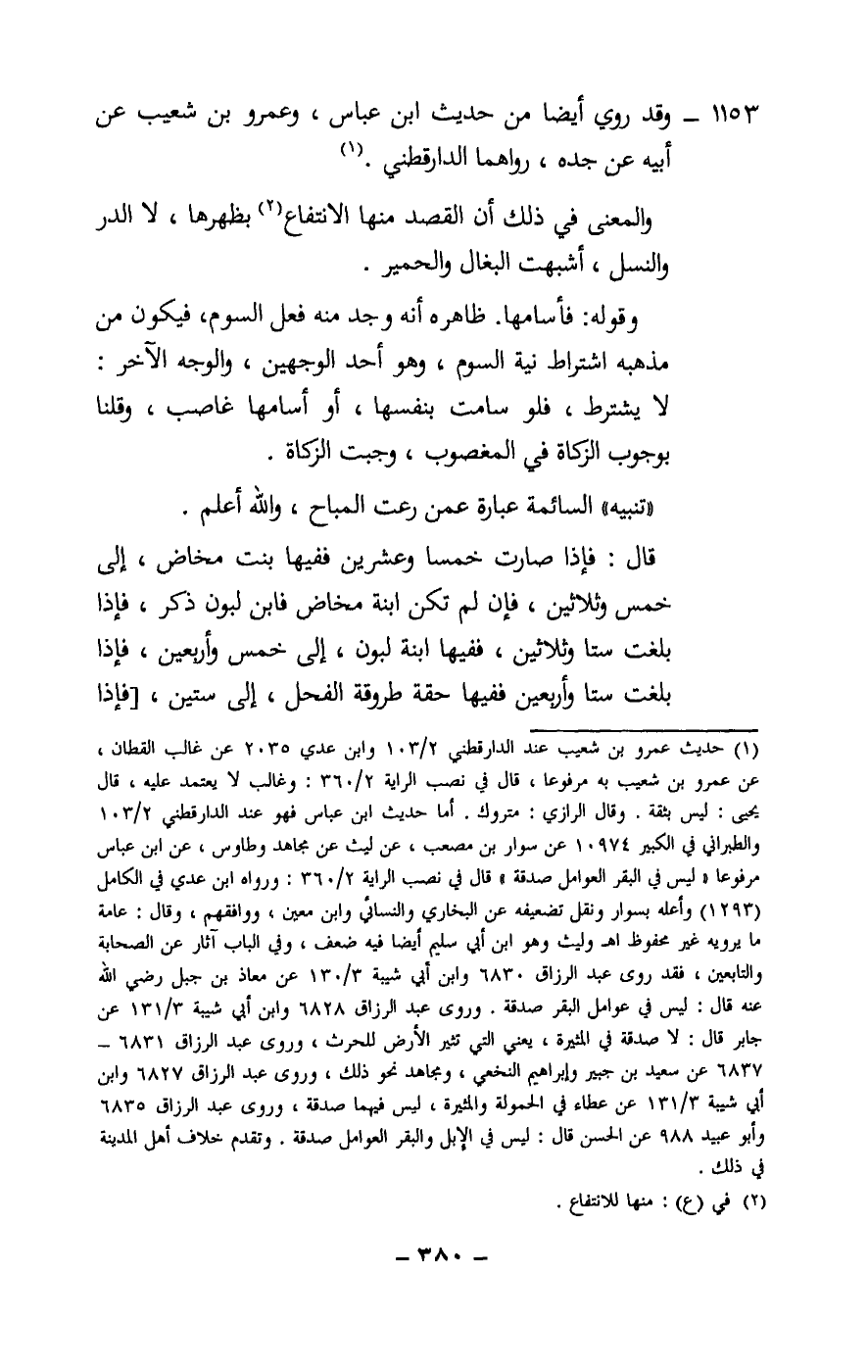 «تنبيه» السائمة عبارة عمن رعت المباح، والله أعلم.