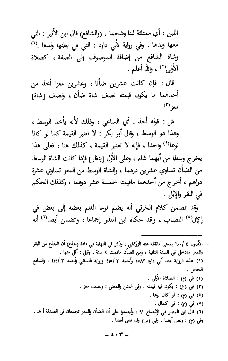 وقد تضمن كلام الخرقي أنه يضم نوعا الغنم بعضه إلى بعض في إكمال النصاب، وقد حكاه ابن المنذر إجماعا، وتضمن أيضا أنه