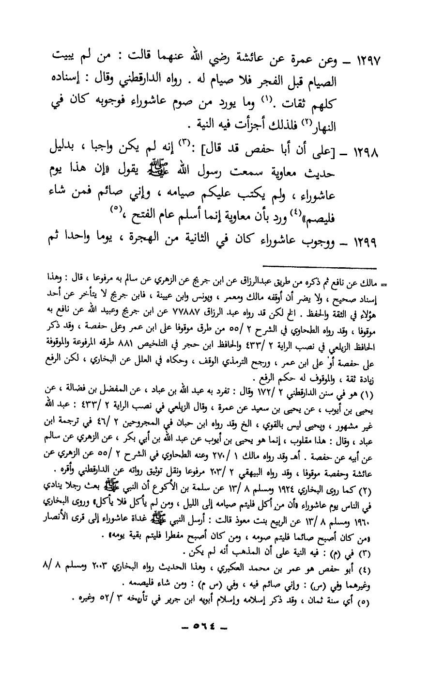 1299 - ووجوب عاشوراء كان في الثانية من الهجرة، يوما واحدا ثم