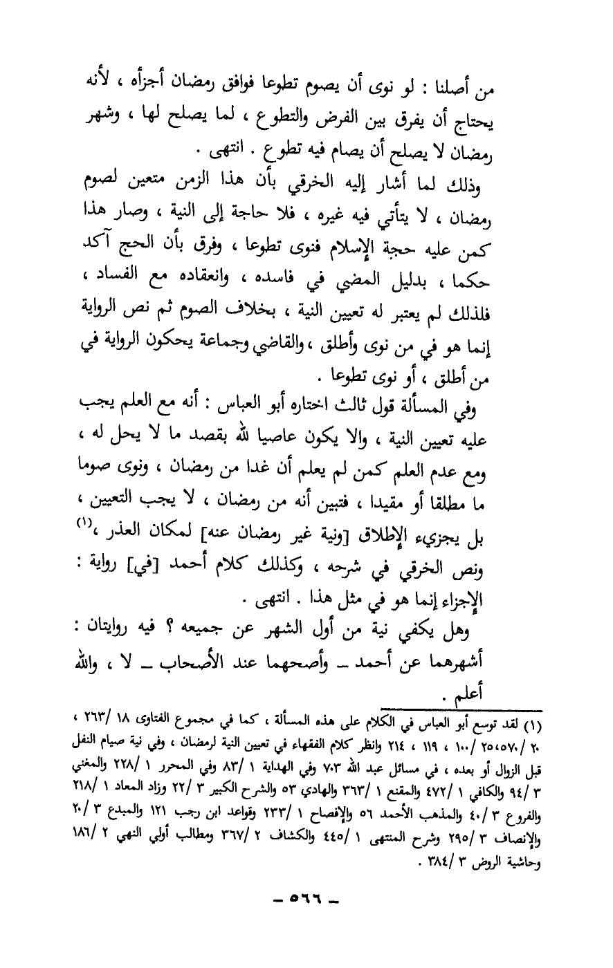 وذلك لما أشار إليه الخرقي بأن هذا الزمن متعين لصوم رمضان، لا يتأتى فيه غيره، فلا حاجة إلى النية، وصار هذا كمن عليه حجة الإسلام فنوى تطوعا، وفرق بأن الحج آكد حكما، بدليل المضي في فاسده، وانعقاده مع الفساد، فلذلك لم يعتبر له تعيين النية، بخلاف الصوم ثم نص الرواية إنما هو في من نوى وأطلق، والقاضي وجماعة يحكون الرواية في من أطلق، أو نوى تطوعا.
