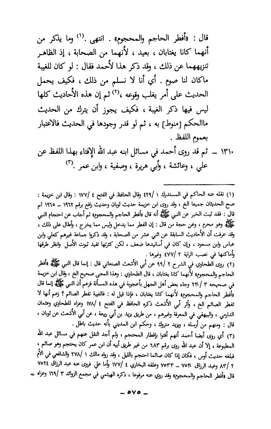 1310 - ثم قد روى أحمد في مسائل ابنه عبد الله الإفتاء بهذا اللفظ عن علي، وعائشة، وأبي هريرة، وصفية، وابن عمر.