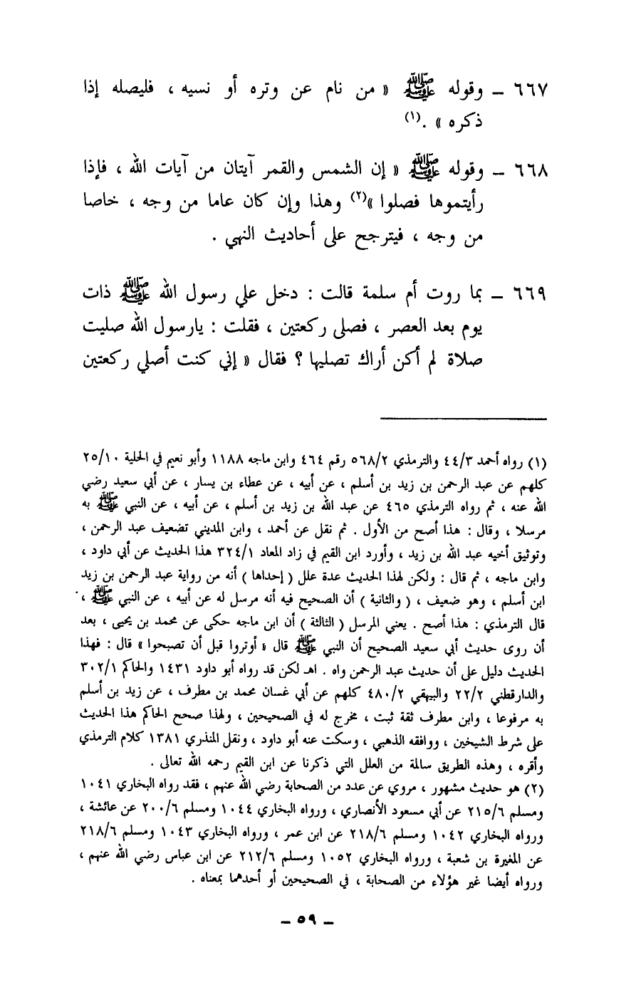 669 - بما «روت أم سلمة، قالت: دخل علي رسول الله - صَلَّى اللَّهُ عَلَيْهِ وَسَلَّمَ - ذات يوم بعد العصر، فصلى ركعتين، فقلت: يا رسول الله، صليت صلاة لم أكن أراك تصليها؟ فقال: «إني كنت أصلي ركعتين
