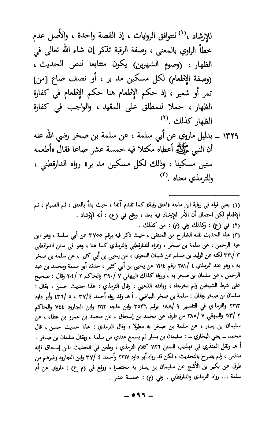 1329 - بدليل ما روي «عن أبي سلمة، عن سلمة بن صخر - رَضِيَ اللَّهُ عَنْهُ - أن النبي - صَلَّى اللَّهُ عَلَيْهِ وَسَلَّمَ - أعطاه مكتلا فيه خمسة عشر صاعا فقال: «أطعمه ستين مسكينا، وذلك لكل مسكين مد بر» رواه الدارقطني، وللترمذي معناه.