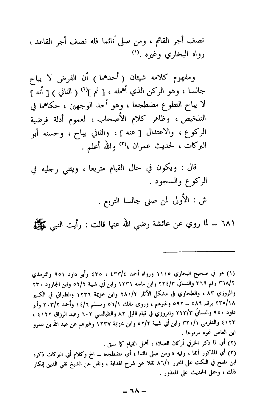 نصف أجر القائم، ومن صلى نائما فله نصف أجر القاعد» رواه البخاري وغيره.