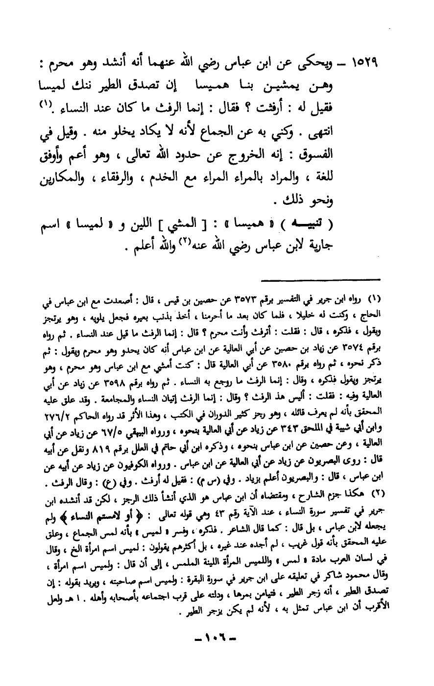 1529 - ويحكى عن ابن عباس - رَضِيَ اللَّهُ عَنْهُمَا - أنه أنشد وهو محرم:
