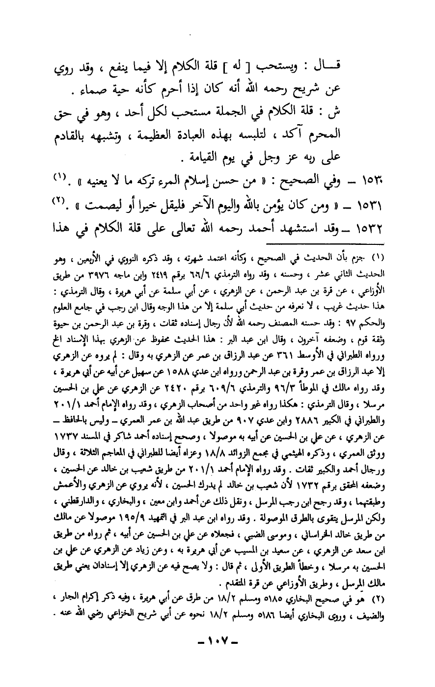 1532 - وقد استشهد أحمد - رَحِمَهُ اللَّهُ تَعَالَى - على قلة الكلام في هذا