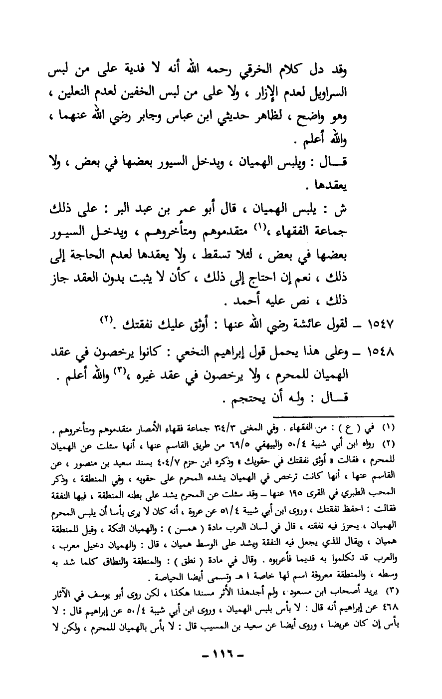 1548 - وعلى هذا يحمل قول إبراهيم النخعي: كانوا يرخصون في عقد الهميان للمحرم، ولا يرخصون في عقد غيره، والله أعلم.